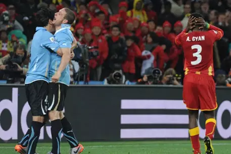 Первый гол африканская сборная забила на последних секундах первого тайма. Своих болельщиков порадовал полузащитник ганцев Салли Мунтари, который поразил ворота соперника с дальнего расстояния. Двукратные чемпионы отыгрались на 55-й минуте. Уругвайский форвард Диего Форлан вместо навеса нанес неожиданный для голкипера удар и угодил в дальний угол ворот. В серии пенальти отличился вратарь сборной Уругвая Фернандо Муслера, отразивший два мяча.