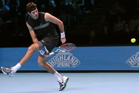 Уже в первом гейме стартовой партии Дель Потро удалось сделать брейк и захватить преимущество в сете. В пятом гейме аргентинец снова взял подачу швейцарца и без труда довел партию до победы - 6:2. Во втором сете первая ракетка мира висел на волоске от вылета из турнира, проигрывая на тай-брейке со счетом 4:5. В случае победы Дель Потро в двух сетах, именно южноамериканец, а также Энди Маррей выходили в полуфинал. Тем не менее Федереру удалось проявить характер и выиграть вторую партию на тай-брейке - 7:5, обезопасив тем самым себя от завершения борьбы за итоговый трофей года. В свою очередь, в третьей партии уже аргентинцу нужна была победа с разницей в три гейма, которая обеспечивала ему полуфинал. При счете 3:3 на подаче южноамериканца , у Федерера появились первые брейк-поинты в матче, однако здесь уже Дель Потро проявил волю, вышел вперед, а затем сам, в третий раз за игру взял подачу швейцарца и довел матч до победы - 6:3.