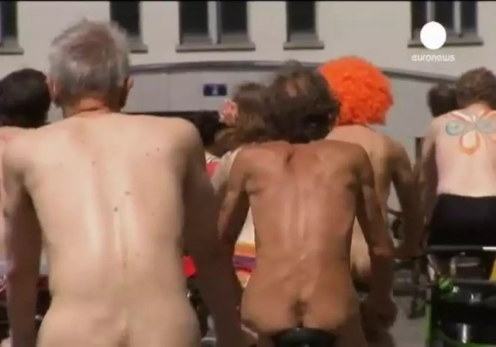 150 голых велосипедистов проехали по Брюсселю Кадр Euronews