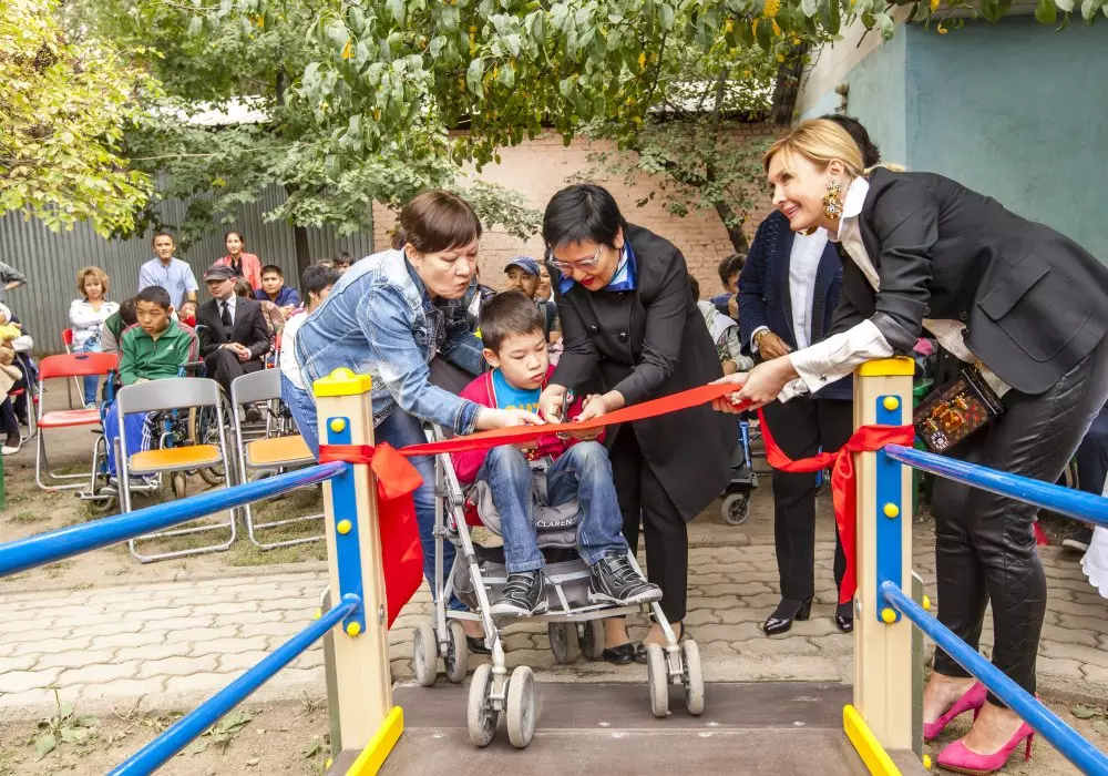 Игровая площадка была установлена в центре Ассоциации родителей детей-инвалидов "АРДИ" при поддержке Ассоциации деловых женщин Алматы и ОФ Sport Concept. Площадки снабжены специальным пандусом для детей-колясочников.