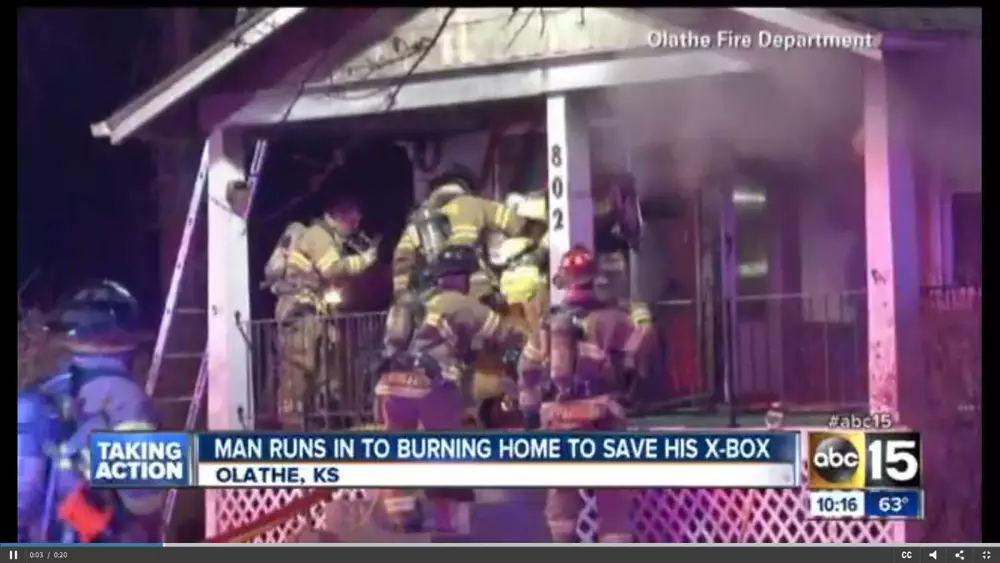 Житель американского штата Канзас проснулся рано утром 24 января и обнаружил, что его дом охвачен огнем. Он выбежал на улицу с пустыми руками, однако затем вернулся, чтобы спасти от пожара свою игровую приставку. По словам пожарных, мужчина во время "спасательной операции" получил легкое отравление угарным газом.