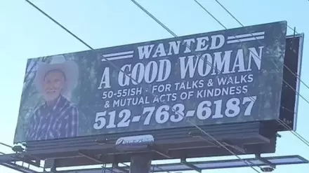 Согласно данным издания, мужчина по имени Джим Бэйс решил установить гигантский рекламный щит на шоссе в Техасе в надежде найти "хорошую женщину".