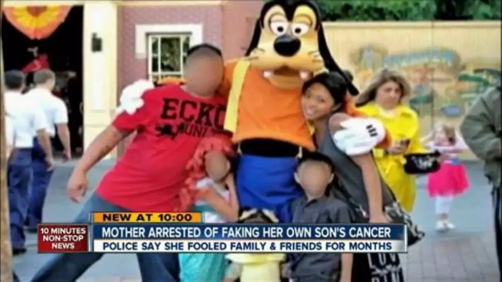28-летняя Сэнди Нгуен убедила всех своих родственников и знакомых, что ее шестилетний сын неизлечимо болен. Так она решила заработать на поездку в Диснейленд. Жительница Колорадо развернула благотворительную кампанию по спасению своего ребенка. Она создала веб-сайт с описанием мнимой болезни и рассказала, что ее сыну осталось жить не больше восьми месяцев, если он не пройдет дорогостоящий курс химиотерапии.