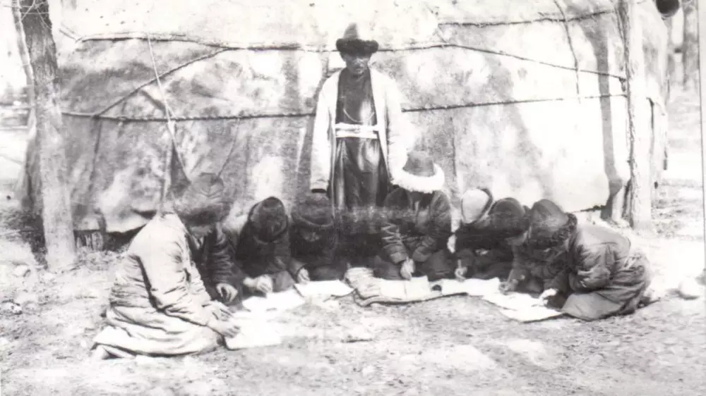 В 1935 году больше 90 процентов всех детей обучались в школах, в то время как за пять лет до этого аналогичный показатель едва превышал 40 процентов. Тем не менее, как видно на фото ниже с мальчиками у юрты, материально-техническая база оставалась на низком уровне как при царе, так и в первые десятилетия советской власти. Учителей, школьных помещений и учебников катастрофически не хватало. Преподавали в итоге чуть ли не на улице", - рассказал Жуманов.