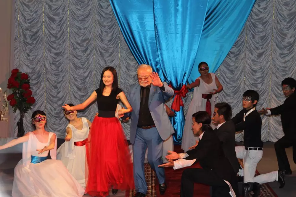 В честь вручения премии и дня рождения Ашимова студенты Академии искусств имени Жургенова устроили небольшой сюрприз для своего учителя. В начале концерта студентка второго курса пригласила Ашимова на вальс, а позже начинающие актеры и вовсе устроили мини-шоу с фонариками. В полной темноте студенты окружили легенду кино и, включая и выключая фонарики, станцевали с ним под композицию группы Fort Minor - Remember The Name.