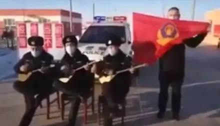 Желіде тараған видеода полиция формасын киген үш адам домбырамен коронавирустың жаңа түрі туралы ән шырқайды. Үшеуі де медициналық маска таққан. Олардың қасында қызыл туған ұстаған тағы бір адам тұр. Ал фонында қытай тіліндегі жазбалар бар.