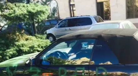 Автомобиль, надписи на котором гласят: "За ВДВ", "Никто, кроме нас", "85 - ВДВ", рассекает по столичным улицам.
