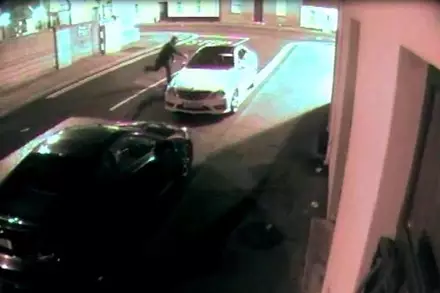 На кадрах видно, как незадачливый воришка дважды пытался разбить кирпичом стекло припаркованного Mercedes. Мужчина с силой швырял кирпич в боковое окно, но предмет всякий раз отскакивал. Тогда угонщик подошел к автомобилю с другой стороны и повторил свое действие. Однако булыжник, спружинив, угодил прямо в лицо злоумышленнику, от чего тот ненадолго потерял сознание.