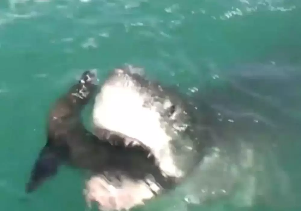 Белая акула съела тюленя на глазах у туристов Кадр из видео с сайта youtube.com