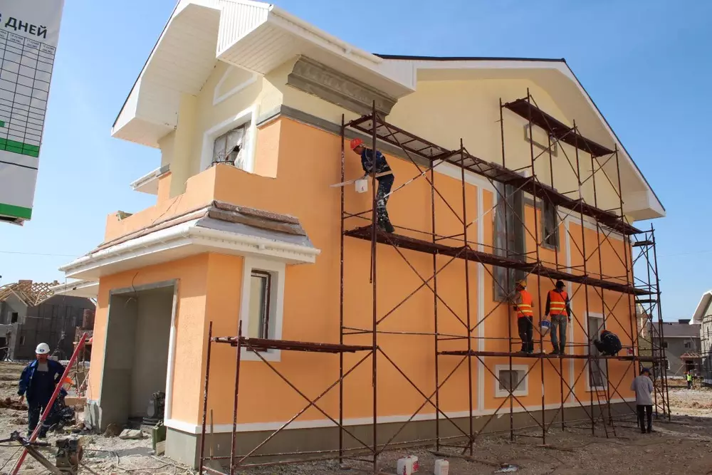 "Вчера в 22.00 бригада фасадчиков закончила покраску и декоративную штукатурку фасада. Стоит отметить, что такая внешняя отделка дома придает не только эстетичный вид нашему коттеджу, но и обладает хорошими эксплуатационными характеристиками. К примеру, декоративная штукатурка устойчива к воздействию атмосферных осадков и низких температур, окрашенная в массе не выгорает на солнце", - отметил преимущества фасадной отделки Естай Ентыбаев, генеральный директор Дивизиона Индивидуальное жилищное строительство.