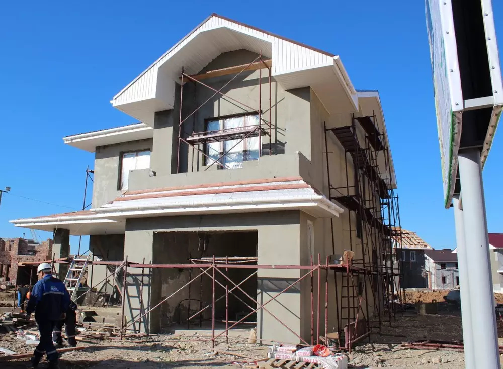 Наступил шестой день строительства экспериментального коттеджа семейного городка Family Village, передает корреспондент Tengrinews.kz. За сутки строители BI Group положили второй слой штукатурки фасада, завершили основные кровельные работы и установили окна.