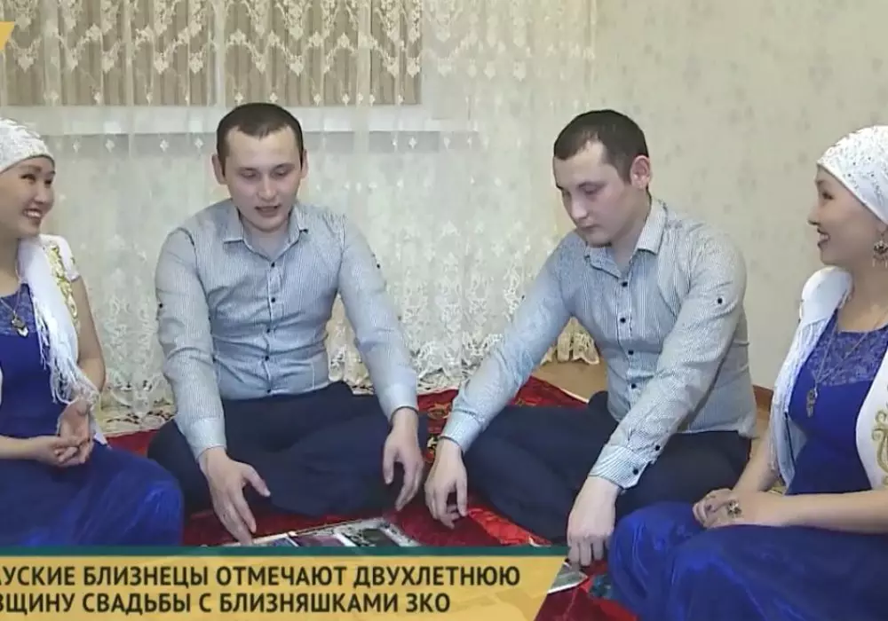 Братья-близнецы и сестры-близняшки из Актау отметили бумажную свадьбу Кадр телеканала "Хабар"