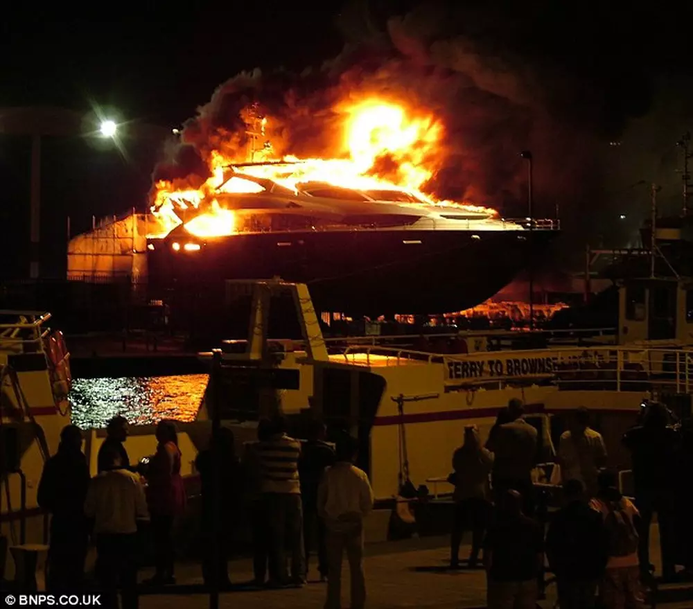 Яхта Sunseeker длиной в 34 метра была пришвартована в порту Poole на юго-западе Англии в Дорсете. Хозяин судна, 40-летний бизнесмен, ужинал в одном из ресторанов в то время, когда яхта неожиданно вспыхнула. Пожарные не успели потушить огонь, от судна осталось только стекловолокно и металлический корпус.