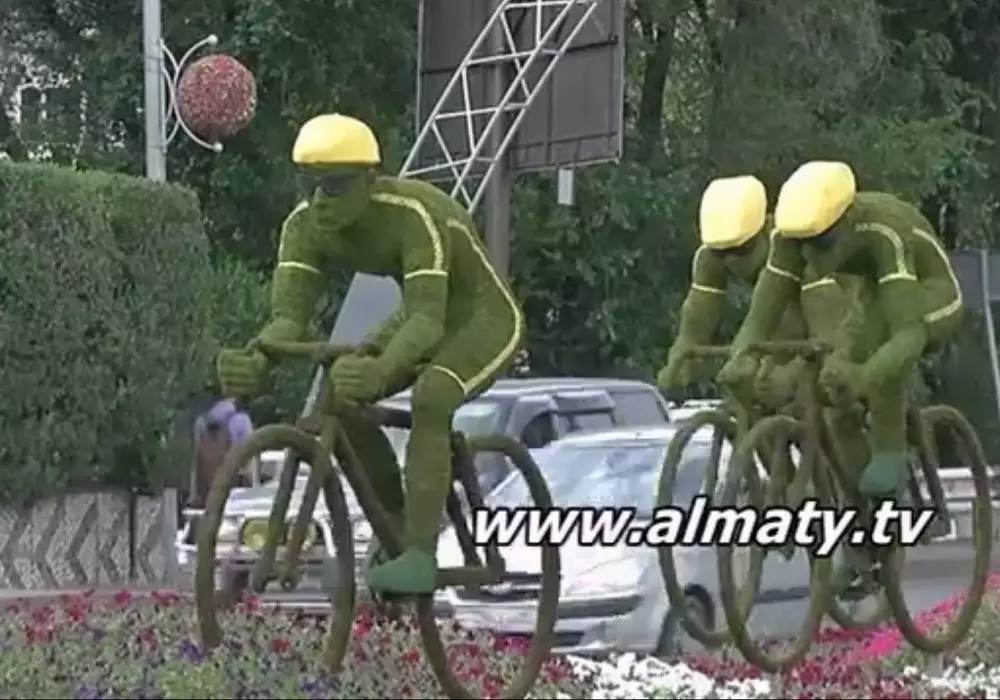 Напомним, ранее стало известно, что эти зеленые фигуры велосипедистов на проспекте Аль-Фараби стоят 14 миллионов тенге. Теперь эту информацию опровергли. Зеленые фигуры будут использоваться круглогодично. Ночью их планируется освещать. На создание одной фигуры уходит почти неделя, они покрываются мхом, поэтому эстетичный вид сохраняется надолго.