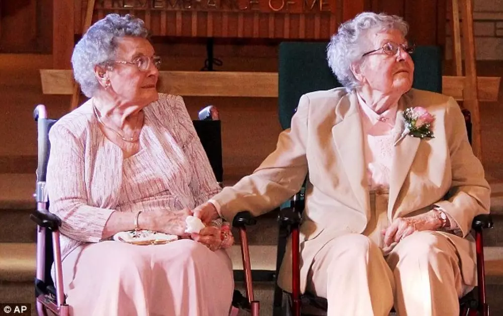 В американском городе Дэвенпорт официально вступила в брак лесбийская пара - 91-летняя Вивьен Бояк (Vivian Boyack) и 90-летняя Алиса Дюбс (Alice Dubes), сообщает DailyMail. Церемония бракосочетания состоялась в христианской церкви. Женщины во время нее сидели друг перед другом в инвалидных креслах.