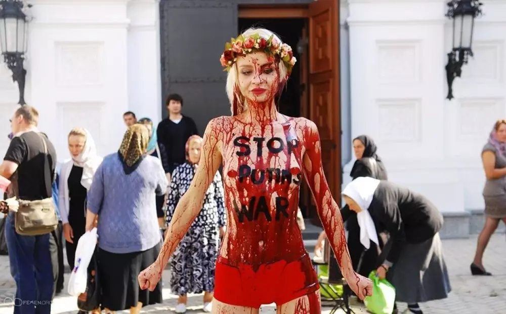 Украинские секстремистки Femen заявляют, что "взяли эстафету от Владимира Путина, облив себя ледяной кровью". На сайте движения Femen сообщается, что "вместе с Путиным украинской кровью щедро обливаются Патриарх Кирилл и новоназначенный им украинский митрополит Онуфрий".