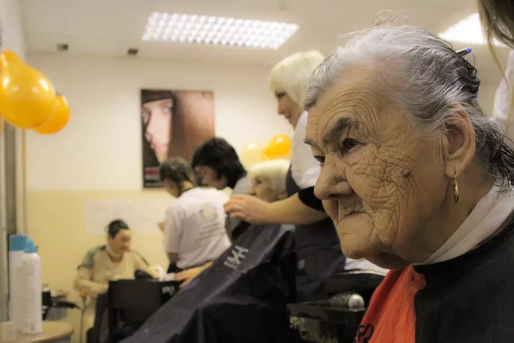С утра бабушки и дедушки выстроились в очередь в парикмахерскую при доме престарелых. Желающих прихорошиться оказалось много. А к подопечным учреждения, не способным передвигаться, молодые стилисты приходили в комнаты.