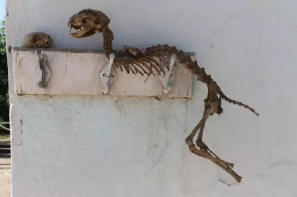 Скелет неизвестного животного обнаружили в поселке Амангельды Казыгуртского района Южно-Казахстанской области, сообщает телеканал "Отырар". Скелет был найден рабочими при сносе дома. "Мы поднимали полы, когда увидели внизу скелет. Сказали хозяину, он решил подождать жену, она учительница. А та, когда пришла, сказала, что скелет похож на динозавра. Как в фильмах показывают", - рассказал один из рабочих. Еще одна находка небольшого черепа была сделана неподалеку от первой. Экземпляры были сфотографированы для консультаций у специалистов в областном историко-краеведческом музее. "Судя по зубам, покрытым эмалью, это млекопитающее, но отнюдь не динозавр. Чтобы определить, кто это, надо хорошо посмотреть и пощупать. Но загадка остается", - заявил старший научный сотрудник краеведческого музея ЮКО Владимир Горянов.