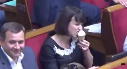 На Украине у пользователей соцсетей набирает популярность видео, как народный депутат Верховной Рады от партии "Народный фронт" Татьяна Черновол ест мороженое в сессионном зале прямо во время заседания парламента, передает корреспондент Tengrinews.kz.