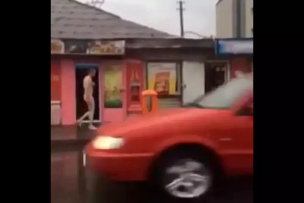 Голый мужчина устроил прогулку по улицам Астаны Скриншот с видео youtube.com