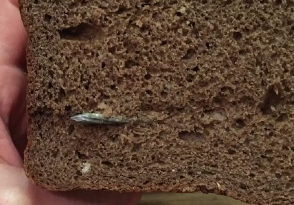 Гвоздь в хлебе обнаружила жительница Астаны, передает корреспондент Tengrinews.kz. С жалобой она обратилась в рубрику "Народный контроль" на сайте столичного акимата.