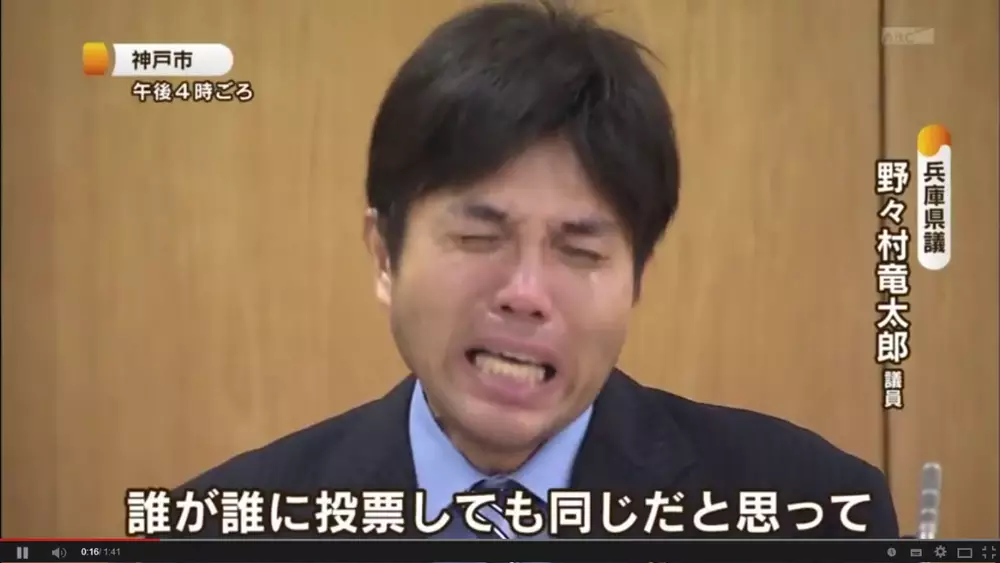 На кадрах видно, как 47-летний чиновник рыдает, кричит и бьет кулаками по столу, пытаясь донести до слушателей, что он трудился на благо общества. "Я наконец-то стал членом ассамблеи префектуры… с единственной целью изменить общество… Эту Японию… я хочу изменить это общество… Я поставил на кон свою жизнь… Вы понимаете?" - бессвязно произносит он.