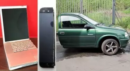 На самом деле ролик, на котором отвергнутый мужчина распиливает болгаркой автомобиль, телефон, кровать и другие предметы, а также фотографии были созданы для немецкой ассоциации адвокатов.
