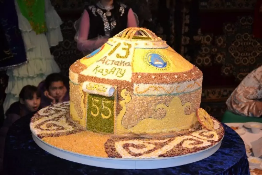 "Жилища из хлеба" уже вошло в Книгу рекордов Казахстана. Диаметр юрты составляет 55 сантиметров и символизирует возраст университета, в 13 злаков, использованных при изготовлении юрты, - возраст Астаны.
