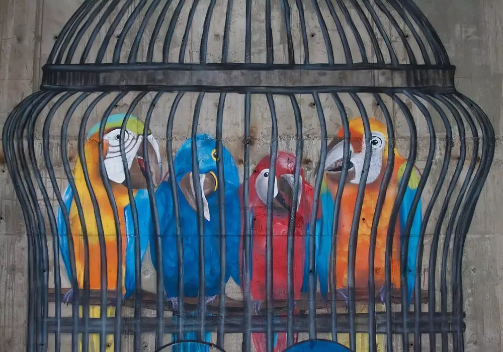 Казахстанский стрит-арт-художник Паша Кас представил свое очередное творчество под названием "Свободу попугаям", сообщает корреспондент Tengrinews.kz.
