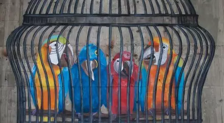 Казахстанский стрит-арт-художник Паша Кас представил свое очередное творчество под названием "Свободу попугаям", сообщает корреспондент Tengrinews.kz.