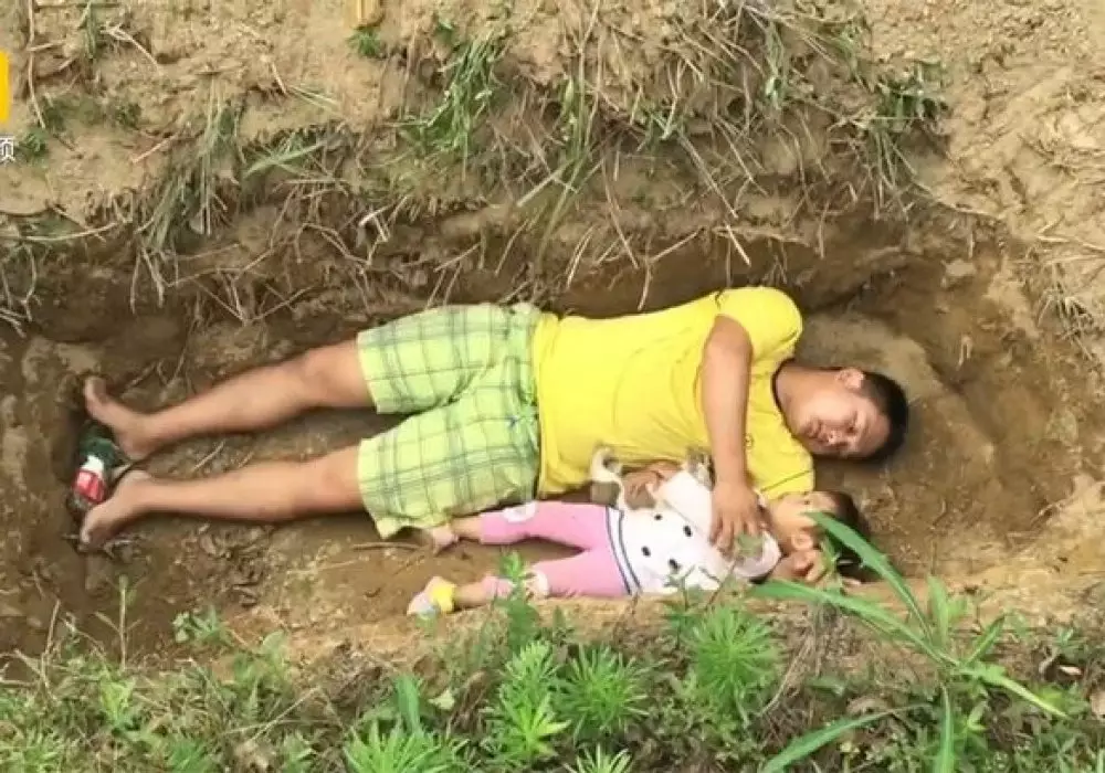 Китаец готовит больную 2-летнюю дочь к смерти играми в могиле Кадр из видео с сайта pearvideo.com