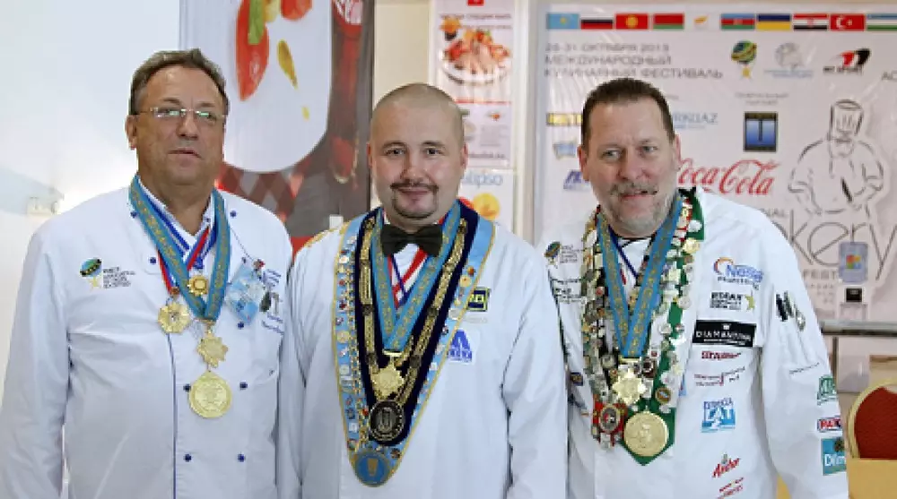 Почетным гостем кулинарного "поединка" и его жюри стал обладатель 178 медалей и высших наград, директор Ассоциации сообществ шеф-поваров (World Association of Chefs' Societies - WACS) по странам Африки и Ближнего Востока Томас Гуглер. Именитый повар готовил для королей Таиланда и Швеции, для Фрэнка Синатры, Мадонны и Майкла Джексона. "То, что у вас проходит такое событие, - очень важно и хорошо! Я впервые посетил Казахстан и приятно удивлен такой красивой страной с очень дружелюбными и гостеприимными людьми. Я думаю, что ваши повара имеют хороший уровень и большое будущее. Я сужу по тому, что видел их на международных соревнованиях. Особенно, когда речь идет о приготовлении национальной еды. Я не раз пробовал ваши национальные блюда из конины. И когда я прилетел в Казахстан, мой день начался не с кофе или чая, а с ломтика конины", - рассказал Гуглер.