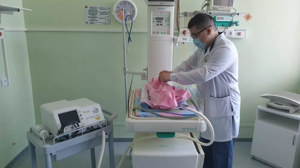 "Аппарат для лечебной гипотермии позволяет постоянно мониторить состояние ребенка, контролировать степень охлаждения и точно регулировать температурный режим вплоть до 1 градуса. Для нас критически важно стабилизировать температуру за три дня, иначе не избежать инвалидности, а иногда и смерти ребенка", - объясняет директор Кызылординского областного перинатального центра Гульнара Жумашева.