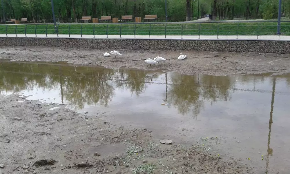 В минувшие выходные жители и гости Астаны, посетившие столичный парк, могли стать свидетелями неприятной, вызывающей жалость картины. Пруд с лебедями был практически осушен, птицам оставили лишь неглубокий ручеек, больше похожий на лужицу, сообщает корреспондент Tengrinews.kz.