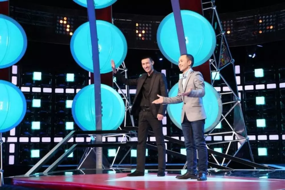 Мартиросян и Слепаков пригласили двоих карагандинцев в финал "Comedy баттл" Арнат Утепбергенов и Ернар Косжанов во время выступления. Фото из личного архива.