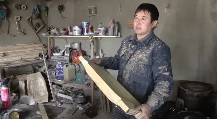 Мастер живет в Казахстане уже около 10 лет. Когда-то он вместе с семьей переехал на историческую родину из Китая. Сначала он работал в местной шахтинской школе искусств, учил детей рисовать. Вскоре мужчина открыл свой столярный цех на дому. Его небольшая мастерская, на первый взгляд, совсем не уютная. Но именно здесь художник творит настоящие чудеса.