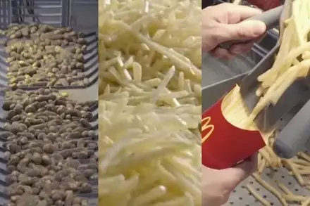 Процесс приготовления картофеля фри был показан в мельчайших деталях. Оказалось, что нарезанный картофель окунается сотрудниками McDonald’s в декстрозу, что позволяет добиться золотистого цвета при жарке. Затем картофель обмакивают в пирофосфат натрия (неорганическая пищевая добавка-стабилизатор). Блюдо наполовину обжаривают и подвергают шоковой заморозке.