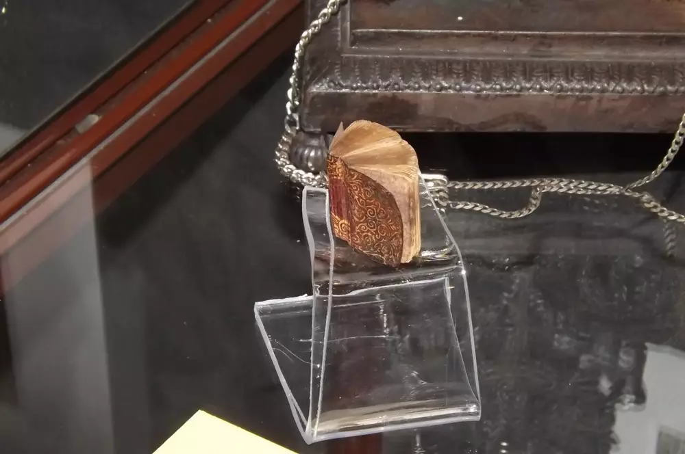 "Когда мы стали собирать экспонаты, то обратились к жителям нашего города с просьбой принести на выставку какие-то интересные предметы. И вот один из жителей временно предоставил нам из своей частной коллекции Коран конца XIX века. Миниатюрность в то время всегда ценилась. Но, скорее всего, его изготовили в подарок, так как это ручная работа", - пояснила заведующая научно-экспозиционным отделом Ирина Соловьева.