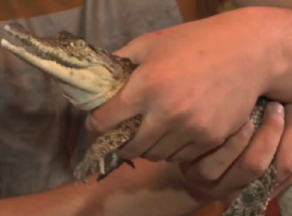 "Сейчас он еще маленький, всего 60 сантиметров в длину, а когда вырастет, будет доходить до двух метров. Животное, скажем так, не домашнее, потому что своенравное, может укусить, если неправильно обращаться. Этот вид аллигатора распространен на реке Нил. Из-за кардинальной разницы в климате за ним нужен особый уход. Полакомиться он любит только деликатесами: отборным мясом, птицей и рыбой", - говорят супруги.