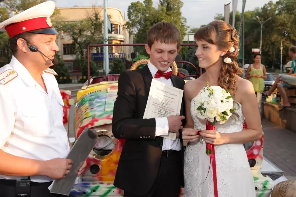 Необычная свадьба на СТО прошла в Алматы, передает Tengrinews.kz со ссылкой на организатора мероприятия - известного ведущего Виталия Дорца. История любви Анастасии и Егора Савченко началась с ДТП по дороге на озеро Кольсай в Алматинской области. Егор помог Анастасии, когда ее машина сломалась, и так начался роман. Поэтому свадьбу пара решила провести в автостиле. Молодые люди поженились по дороге к банкетному залу в салоне ретро-автомобиля УАЗ, который толкали по дороге. Машину остановил "полицейский", роль которого исполнил автор идеи Дорц, и вместо свидетельства о браке выдал им техпаспорт семейной жизни. Завершилась регистрация арт-проектом "Разрисуй кортеж". Все желающие расписали уникальный ретро-автомобиль молодоженов. Гостям и прохожим для этого выдавались баллончики с красками. Дорц добавил, что разукрашенный УАЗ вернется на СТО, где стоял раньше, и может стать его достопримечательностью. По словам ведущего, традиционные ритуалы можно весело обыграть. Так, во время свадьбы на СТО невеста не бросала букет. К нему был прикреплен болт, а подружкам вынесли гайки. И только одна из них подошла к болту. Кроме того, свои кольца молодожены нашли в автомобильных колесах, которые торжественно вынесли к месту регистрации. А гости обнаружили под капотом УАЗа барную стойку. В бутылках с надписями "Антифриз" и "Автошампунь" было замаскировано вино и шампанское. "Я хочу сказать всем казахстанцам - каждый, если захочет, может сделать креативную свадьбу. Не нужно бояться обращаться за помощью к профессионалам", - сказал Дорц. Так, недавно event-агентство ведущего провело свадьбу в стиле телевизионного сериала "Сулейман Великолепный". "С порога гостей встречал "гарем", подарки были в восточном стиле, а вместо каравая невесте вынесли чак-чак. Конечно, такая свадьба запомнится навсегда", - добавил Дорц. Напомним, что недавно в Бишкеке прошла свадьба на велосипедах.