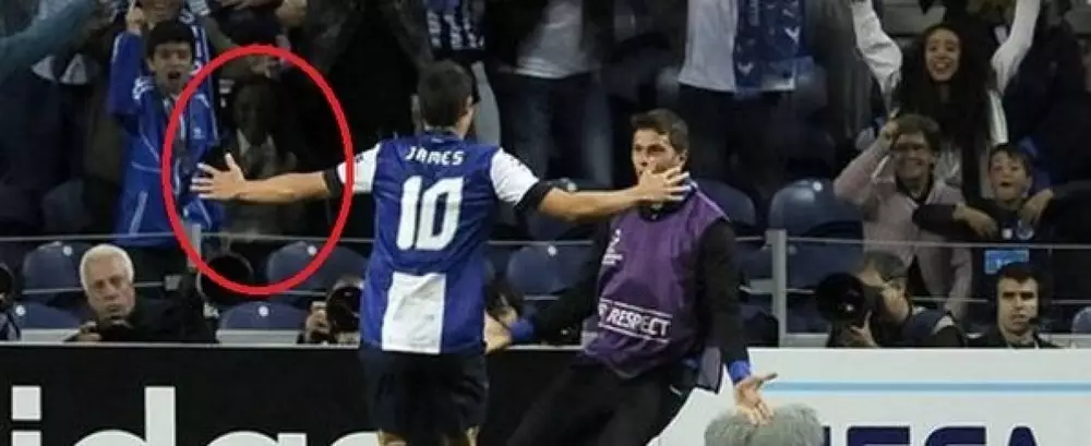 В матче Лиги Чемпионов между "Порту" и "ПСЖ", который состоялся в начале октября на домашнем стадионе "драконов", фотограф информационного агентства Associated Press случайно сфотографировал "привидение". Об этом пишут португальские СМИ. Силуэт таинственного мужчины проявился на снимке, на котором запечатлен полузащитник "Порту" Хамес Родригес, празднующий забитый им гол. Незнакомец находился на трибуне и выглядел словно человек из прошлого. Он носил одежду и прическу по моде начала 20-го века, сообщает известное спортивное издание 101GreatGoals.com. Эксперты исключили вероятность того, что фотография с призраком получилась в результате блика на объективе, так как снимок был сделан профессиональной камерой. Позже появилась версия, что призраком могла быть пожилая болельщица. Женщина якобы не успела одновременно со всеми встать на ноги и отпраздновать гол, попав в объектив в необычном ракурсе. Как бы то ни было, мистическое фото быстро распространилось в социальных сетях по всему миру и вызвало массу слухов и домыслов. Некоторые пользователи высказали предположение, что фантом это ангел-хранитель Родригеса, который посещает каждый матч с участием 21-летнего колумбийца.