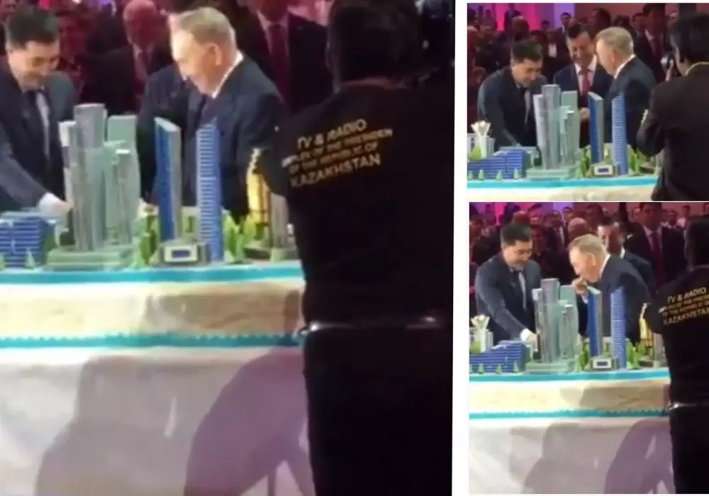По мессенджеру WhatsApp распространяют видео с праздника, на кадрах Президент Казахстана Нурсултан Назарбаев и аким Астаны Адильбек Джаксыбеков разрезают торт. Отметим, что торт выполнен, как небольшой макет в форме Водно-зеленого бульвара (официальное название бульвара - "Нұржол"). На кадрах видео Назарбаев угощает Джаксыбекова и пробует торт сам. Звучит мелодия песни "С днем рождения".