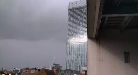Пользователи социальных сетей делятся видеозаписью, на которой многоэтажный дом в Манчестере (Великобритания) издает пугающие звуки. Ролик, опубликованный в YouTube, набирает популярность.