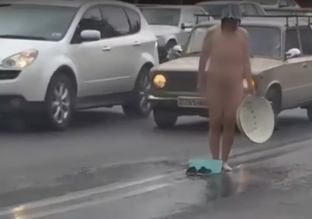Обнаженная женщина "приняла душ" в центре Шымкента, сообщает Отырар.