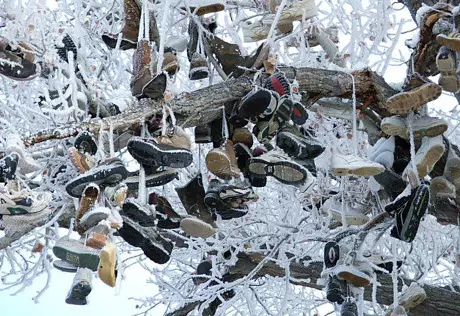 21-метровый тополь стоял у федеральной трассы N50 в центральной части штата Невада. Дерево прозвали "обувным", потому что туристы, приезжавшие в штат оставляли на ветвях гиганта старую обувь - кеды, кроссовки, ботинки, мокасины. Однако до сих пор неизвестно, кто именно начал эту традицию, несмотря на старые "плоды" дерева, местные жители охраняли их от злоумышленников и хулиганов.