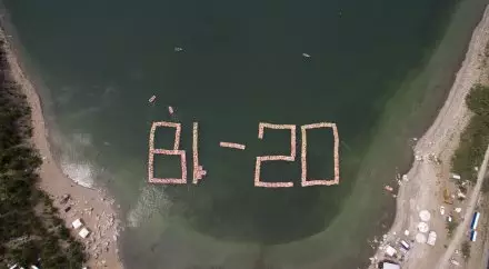 Около тысячи человек построили лого BI Group на воде в честь юбилея Построенный с помощью плотов логотип "BI - 20" на поверхности озера Чебачье