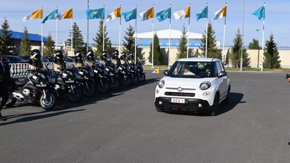 Сегодня в аэропорт Папу Римского Франциска сопровождал мотоциклетный эскорт Специального батальона Управления местной полицейской службы Департамента полиции Нур-Султана и офицеры Службы государственной охраны. В аэропорту глава Католической церкви остановил свой автомобиль, чтобы обратиться к сопровождающим. Он поблагодарил их за проделанную работу.