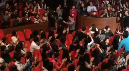 "Дорогая, я очень счастлив, что встретил тебя. Я очень сильно тебя люблю. Я хочу провести остаток жизни с тобой. Хочу, чтобы ты стала моей женой", - произнес парень. После чего вручил возлюбленной букет цветов и обручальное кольцо. Девушка подарок приняла и, судя по всему, ответила на предложение согласием. Зрители встретили романтический жест молодого человека бурными овациями.