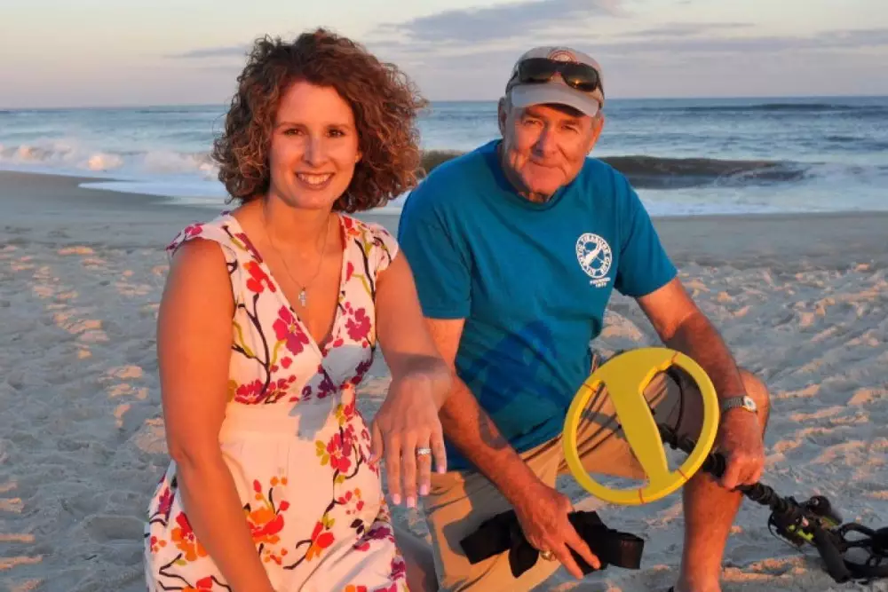 Пляжный "кладоискатель" вернул женщине потерянное кольцо с бриллиантом Эрин Кароццо и пляжный "кладоискатель" Майк Коган. Фото с сайта nypost.com