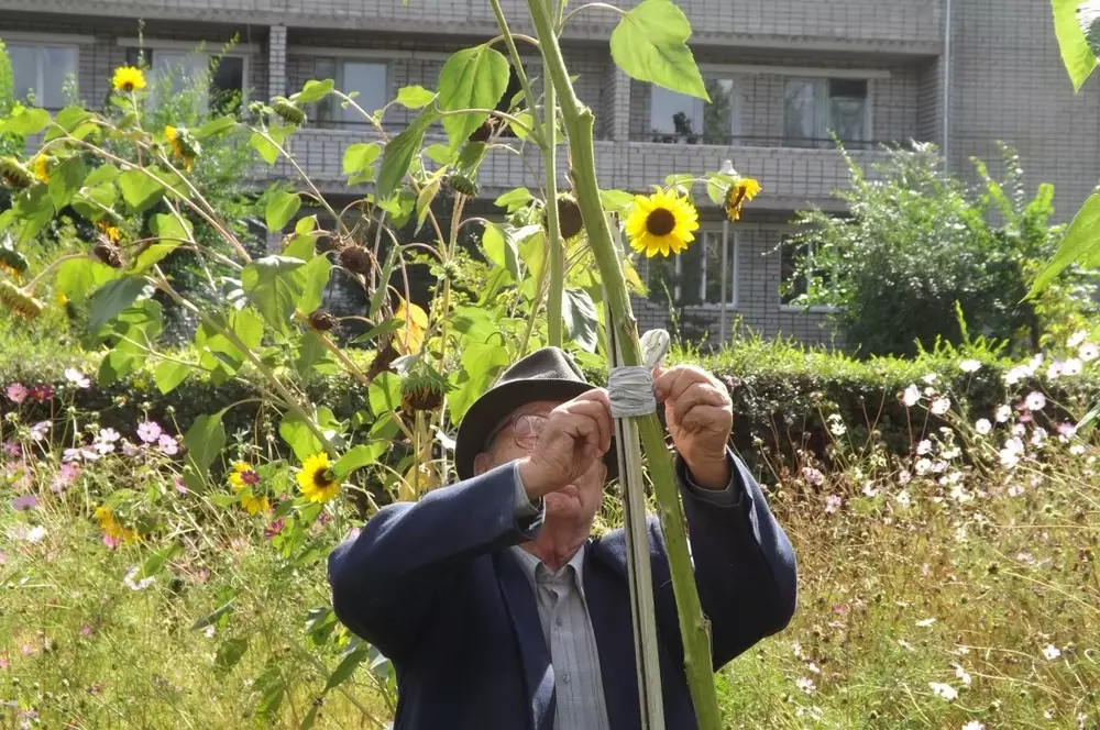 Подопечные дома престарелых в Семее коротают время за выращиванием гигантских подсолнухов, передает корреспондент Tengrinews.kz. В учреждении рассказали, что пенсионеры уже много лет занимаются выращиванием цветов различных сортов. В этом году 82-летний Василий Алеев решил посадить декоративные подсолнухи. Однако дедушка не ожидал, что их высота достигнет рекордных четырех метров. "Я измерил один из подсолнухов, в высоту он достигает четырех метров", - уточнил Василий Григорьевич. Мужчина считает, что вырастить подсолнухи таких размеров ему удалось благодаря постоянному уходу и поливу. "Я вовремя ухаживал, а растению что главное нужно - воздух, солнце и вода", - отметил Алеев. Напомним, этим летом один из жителей Семея вырастил на своем садовом участке подсолнух высотой почти три метра. Другой огородник при сборе клубники наткнулся на ягоду необычной формы. Она имела семь отростков и напоминала цветок с лепестками.